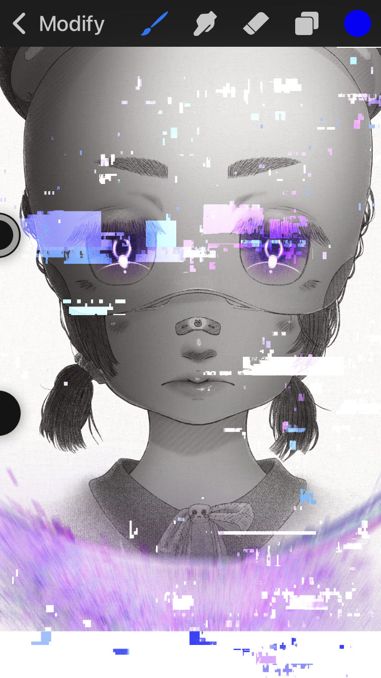 Glitch brush pack. 46 brushes filled with blood, sweat and 01010100 01100101 01100001 01110010 01110011! You’ll find all sorts of weird S̶h̶a̵p̴e̴s̶ and designs including tv static, circuit borad glitches, and binary camo (bonus brush).